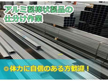 ・倉庫内にてアルミ製の棒状製品の仕分け作業になります。